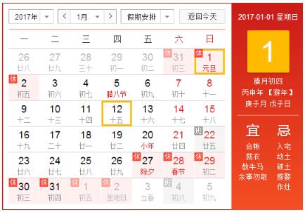 2017年元旦放假时间安排表: