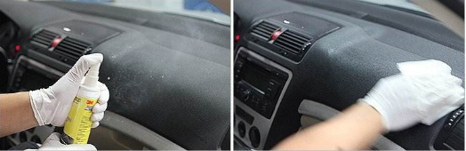 把各部分灰尘打扫干净以后,使用专用的仪表蜡一喷,过几秒钟再用干净的抹布一擦,仪表板就“焕发了青春”了。