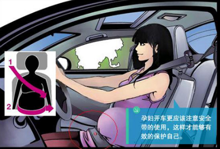 孕妇必须佩戴安全带,腰带要位于肚子下缘以下