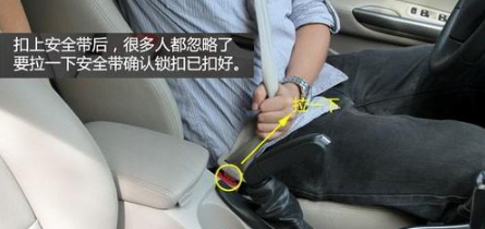 虽然扣上安全带后,卡扣会发出“啪”的一声,但是我们还是应该拉扯一下安全带确保安全带锁扣已经扣好且没有损坏。这是很多车主在使用安全带时忽略的步骤。