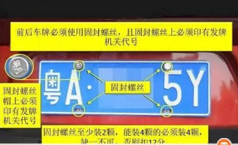 同时,车辆牌号必须按照标准安装,必须安装固封螺丝,安装车牌架时,车架内缘与车牌号之间距离必须大于5毫米。