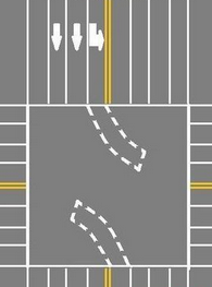 1、定义:“左转弯待转区”是指当同向直行车道绿灯亮时,左转弯车道的车辆必须前移到待转区,等待信号灯。左转弯的车道增加了数米长的白色虚线框,直接连接到了马路中间。这些白色虚框线就是设置的“左转弯待转区”,供同向直行道绿灯亮起时,左转弯车道的车辆提前进入等待转弯。左转弯待转区的范围是原车辆停止线到道路的中心处,末端稍有弯曲,中间跨人行横道。设有左转弯待转区的路口,交通信号灯需实行先直行后左转的规则。注意与左转导流线的区别。