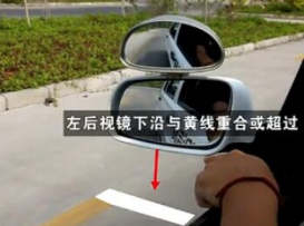 2、当左后视镜下沿与黄线重合或者超过黄线时,立即停车。