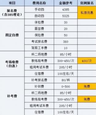 以上均为统一标准,所有驾校都一样。