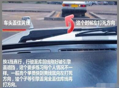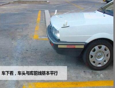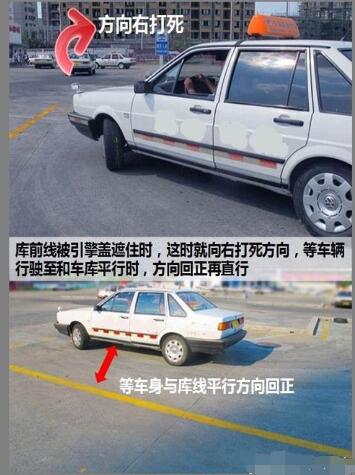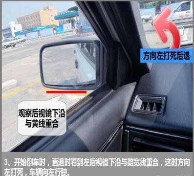 (二)如果快要压左边线,则继续打死右方向,接近平行时方向盘回正。如果还是压线,应该提前或者加速方向盘速度。