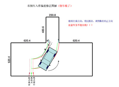 四、右倒车入库偏差修正图解倒车晚了