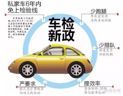 (3)小型、微型非营运载客汽车6年以内可免检2次(需每两年申领一次年检标志);超过6年的,每年检验1次;超过15年的,每6个月检验1次。想知道怎么车检的,请看:不花钱不看车 新政策6年免检验车体验