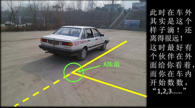 注意:“慢行”,“快打”。由于看到库右下角时,还有个反应时间,所以我建议,似看非看时,就开始打方向。向左打死方向的时间,早了,车身就扎得浅;晚了,就扎的深,宁早勿晚。