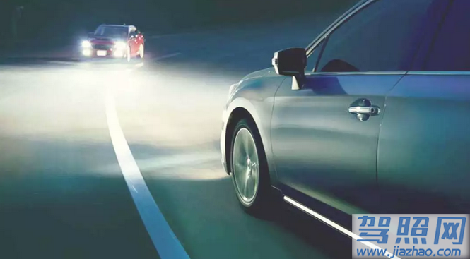 2.不要直视对向车辆的灯光,视线向右避开,以防眩光刺眼;
