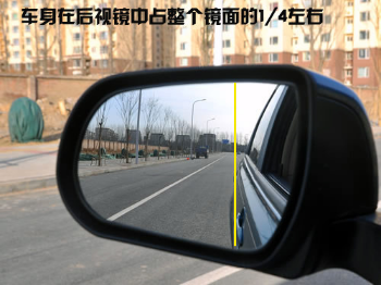 右侧后视镜调整要领:把水平线置于后视镜的2/3位置,然后再把车身的边缘调到占据镜面影像的1/4。