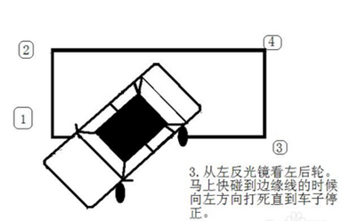 第3步:方向向右打完直至左后视镜能完全看到后车车头
