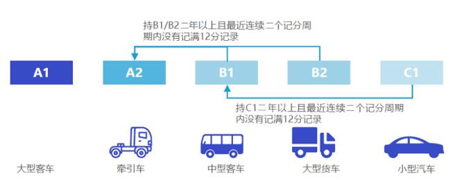 3、如果你有A1准驾车型资格一年以上,且申请最近一个记分周期没有记满12分,才可以申请增驾A2驾驶证。