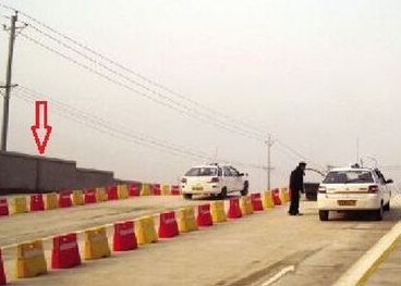 (1)先打起步左转向灯,再挂档(不打灯扣10分,先打灯,后挂档,就可以保证灯亮超过3秒,习惯要养好呀),松手刹,慢松离合,起步。方向盘中心对准坡上的白色箭头向前缓行(见下图,对准后,右车轮正好压在白线上,不压白线扣10分,压黄线直接挂掉)。