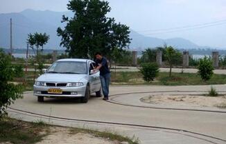 2、在进入S弯时,要注意车头的位置,尽量使车辆外前轮靠近弯道右侧边线行驶,用1挡半联动前进,前进过程中不能停车。前进过程中,还应观察左右后视镜,使车辆沿S路行驶。