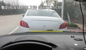 当你在驾驶位看见前车后保险杆上沿的时候,距离前车大概在75cm
