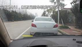 在20KM/H以下的时候,以看见前车轮胎杠下沿为宜