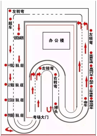 3、 待考区左右车道起步、会车、靠边停车项目一定观察畅通车道方可进行。