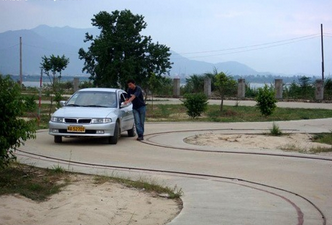 另外就是要对前后轮的位置有判断。如果走第一个弯道,弯道的趋势是向左转弯,于是学员容易一直往左打方向盘,忽略了左后轮离左边线越来越近,最后压线。所以走曲线行驶时要同时注意车的前后轮。
