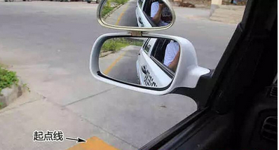 3、通过左右后视镜观察车身是否与库线平行,确认车身直行后迅速回正方向,适当调整车身与库线的距离。