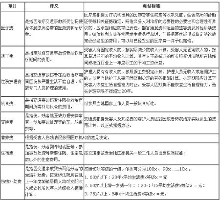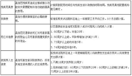 一、交通事故赔偿标准表