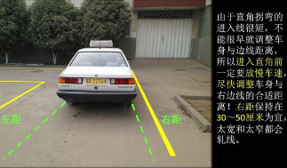 四、当左后轮越过内直角突出点时,开始逐渐向右回方向驶出弯道;
