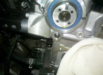 5、发动机正时盖处漏油。拆卸发动机正时盖并重新打胶即可。