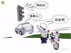 在等红灯时,突然听到特种车辆(如救车、消防车)的紧急鸣笛声时,要是此时你为了让道而闯红灯,虽然是闯了红灯,但这种行为值得表扬,必须对于这些车辆而言,一秒就是生命。这种情况下的闯红灯,到交警大队开具调流证明即可,一经核实即可免去处罚。