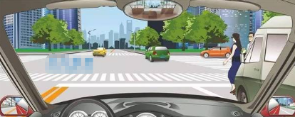 解析:由图可知,有行人正从人行横道线上横穿道路,而机动车已临近人行横道线,此时应停车让行,以免相撞,因此本题错误。
