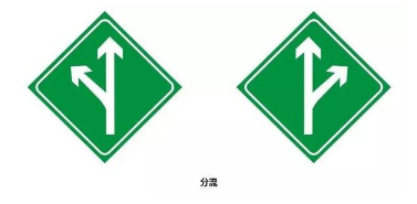 解析:图上可见是车道数量增加标志,并非分流路口标志,因此是错误的。
