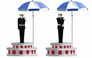 解析:左臂向前平伸,右手向左摆动,为右转弯信号。