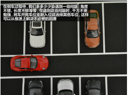 第二步:调整车辆,将车停在隔一个车位中间(车位旁边的旁边车位),此时驾驶员刚好与这个车位的车辆在同一平行线。