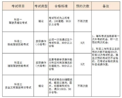 科目一和科目三安全文明驾驶常识考试(科目四)没有次数限制,只要你没有考过,可以一直报名考试,直到合格为止,当然还要交补考费。