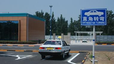 1、先将车辆停靠在直角转弯起始位置,挂入一档,松开手刹,缓慢抬起离合器并保持半联动状态开始匀速行进,保持车身与道路左侧边缘线20公分的距离,(如何保持此距离请在操作前自己选择参照物)。