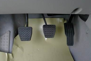 (5)使用离合器踏板时,应以前脚掌部位踏住离合器踏板,不可用脚心部位踏下离合器踏板,因使用脚心部位不易将踏板踩到底,会影响起步和变速的操作。也不可用脚尖踏下离合器踏板,以防滑落。