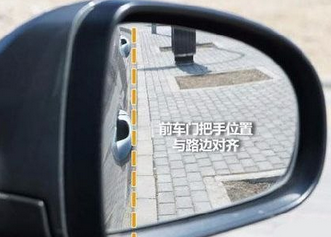 观察车身右侧与马路边缘之间的距离,进行调整。直至右侧前门把手位置,将遮住马路边,或者将“接触”时,在迅速摆直车身。