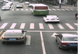 这种情况经常出现在交通灯前的等候车道上,不少驾驶员有意无意地从转弯车道上直行,或从直行车道转弯。