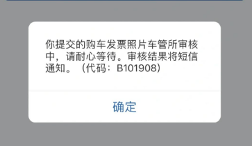 12123app新车选号提交车辆及发票信息后,就一直出现此页面:你提交的购车发票照片车管所审核中,请耐心等待。审核结果将短信通知,选号都不能选,一直在审核。