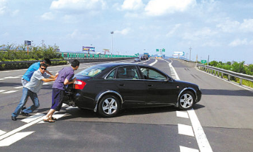 首先车主应该保持镇定,在高速公路上应该尽快将车移到紧急车道,打开危险报警灯,以及在车内60公尺处摆放一些危险警告架,以防止一些不必要的事故。