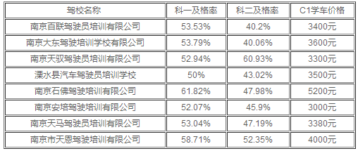 南京驾校收费一览表
