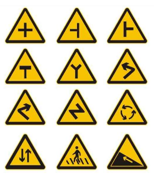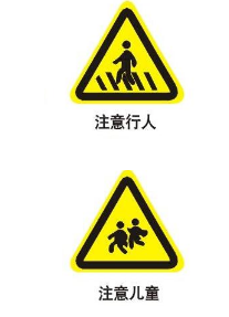 1、黄底黑字三角形,答案优先选注意