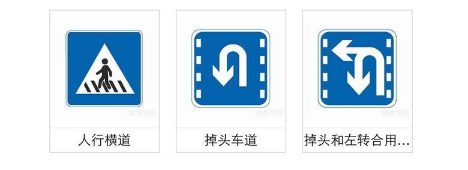 其实大部分蓝底白字的标志大家都能分清,就是很多指示标志的图案和警告标志很像,大家千万要区分开。
