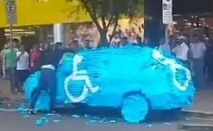 常规的做法,在巴西被抓到违章停车,给你贴纸条,高速你交罚单地点、金额、时间。为期一周,超过限定时间,罚金翻倍。以上是一位车主把车停到残障人的车位上,路上的行人看到了,后来车变成像图片上的那样了。