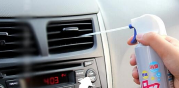 清洗空调外循环需要用到专业清洗剂和喷管(产品中已经配有),然后在清洗外循环前先烘干空调蒸发器:着车,关闭A/C开关,内循环、风量最大、风向吹身、温度最高,烘干3分钟左右。然后熄火,拆卸鼓风机或风机电阻,保证配备的专业喷管可以直接伸到蒸发器表面进行更彻底清洗。清洗完空调蒸发器后,我们还需对空调出风口位置进行清洗。先将发动机熄火,再分别从车内中控台4个空调出风口,将管子倒插进去进行清洗。这里有车主可能会问,后面的空调出风口需要清洗吗,其实不用的,因为空调管是相通的,所以只需清洗前面4个即可。