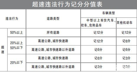对于超速,不同的路段,罚款和扣分情况也不同。