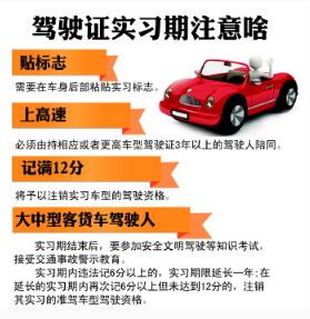 1.实习期期限:机动车驾驶人初次申请机动车驾驶证和增加准驾车型后的12个月。