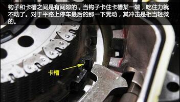因为钩子和卡槽之间有间隙,因此如果你是踩着刹车挂P挡,当松开刹车的时候,车辆会前后晃动一下,直到钩子卡住卡槽某一端,吃住力就不动了。正是由于车子最后那一下的晃动,你会认为很“伤车”。