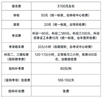杭州市区学车费用明细如下