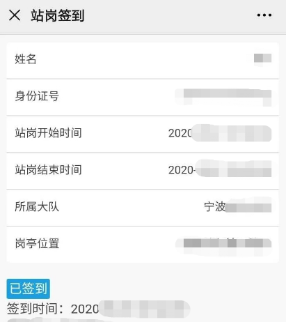9、执勤结束记得签退。学员开始和结束站岗都会拍照留存,确认完成执勤记得签退,待交警确认后再离开。