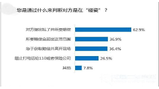 另一个重大问题就是在遇到碰瓷事件时是私了还是走法律途径呢?我们先通过一个案例来说明这个问题。不久前林女士行车途经中山路时就曾遭遇碰瓷,对方并没明显伤口,最后却掏了800元的“私了费”才算解决。从调查数据来看,在问及车主们判断碰瓷的方法时,私了并提出赔偿为碰瓷诈骗的必要条件,而所要赔偿金超出正常范围肯定十之八九就是碰瓷了,而此选项占比为36.9%,看来遭遇过碰瓷的车主们对于是否为碰瓷的判断还是有一定的心得。其实很多车主在遇到行车事故之后,会第一反应的认为可能是事故不是碰瓷,但在处理事故之后仔细回味才发觉,自己的确是遭遇到了碰瓷。