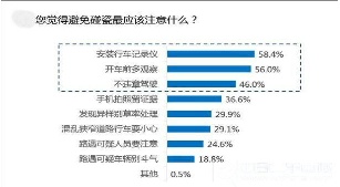 其中58.4%的车主会安装行车记录仪。其次,位列二三位的避免碰瓷方法分别为:开车前多观察、自己不违章驾驶。行车记录仪的好处就在于能减少解释成本,方便取证,从而使碰瓷者没有可乘之机。而且,安装行车记录仪的另一好处就是能够解决“非碰瓷”类的交通事故责任鉴定。但行车记录仪发挥作用的前提是要确保自己不违章驾驶。所以,开车时首先保证自己不违章驾驶,才是避免碰瓷的有效手段。小编在此也希望车主们还是为自己的爱车备上行车记录仪,为自己多一分安全考虑。